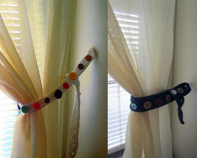 Chọn những gam màu nổi bật cho những chiếc cúc và gắn lên dây kéo rèm. Thật đơn giản để mang đến sắc màu và điểm nhấn ấn tượng cho khung cửa sổ nhà bạn.