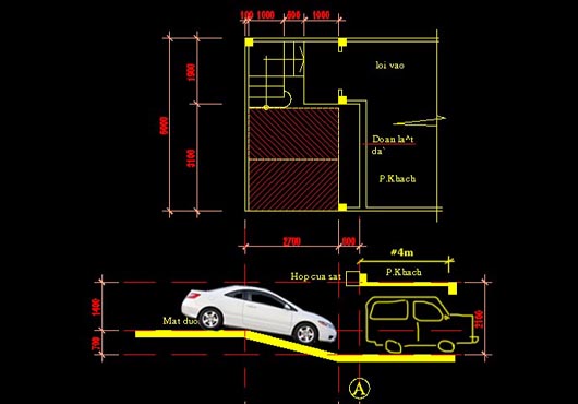 3. Khi thiết kế cần chú ý tới độ dốc sao cho an toàn. Theo tiêu chuẩn xây dựng, đường dốc của gara xuống hầm không được dốc quá 15% - 20% so với chiều sâu của hầm.Chiều cao tính từ mép cửa tầng hầm vuông góc mặt đường dốc phải đảm bảo cho phương tiện giao thông. Khi làm đường dốc cho gara cần lưu ý tránh trường hợp ô tô gầm thấp dễ bị chạm gầm khi xe lên xuống hầm.