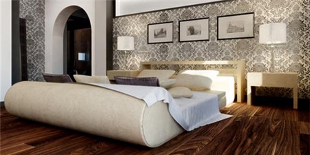 Thay vì dùng những chất liệu lạnh như sứ, cẩm thạch hay granite, hãy cân nhắc sàn gỗ và sàn trải thảm. Lý do rất đơn giản: chẳng ai muốn từ chiếc giường ấm áp bước xuống một sàn nhà lạnh ngắt và dễ trượt.